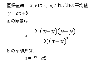 (1) 一次方程式場合、この式は回帰直線と呼ばれる。