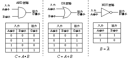 デジタル信号のほとんどは、3つの基本的な論理演算回路で構成され、次の図1で