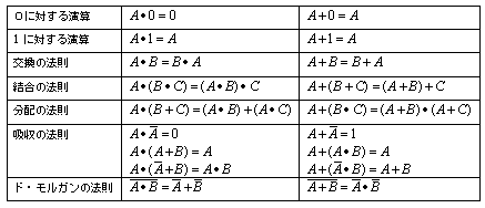 注目すべきは、⇔の左右で、0を1に、1を0に、論理和の+を論理積・に、・を+に置き換えることが可能であると言うことである。