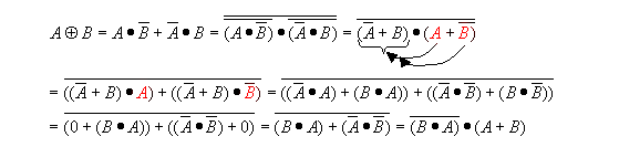 排他的論理和(XOR→(eXclusive OR)):両方が同じ場合に結果を0、違う場合に結果を1とする演算で、〇の中に+を書いた記号が使われる。