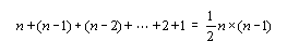 n個の要素をバブルソートした場合の比較回数は、公差を1とする次の自然数数列の和になる。