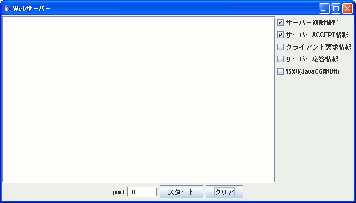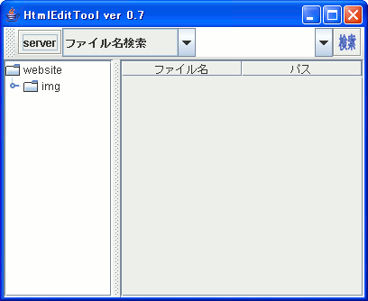 HtmlEditTool.jarの左上端の「server」ボタンでWebサーバー用の次のフレームが表示されます。