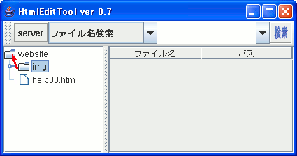 さて、左のTreeViewの位置(以後はローカル・ルートと呼ぶ)は、デフォルトでHtmlEditTool.jarを起動した位置になっています。