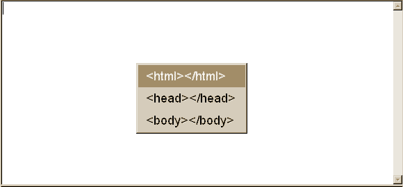 編集領域にキャレットがある状態で、Controlを押しながら < のキーを押してポップアップメニューをだします。