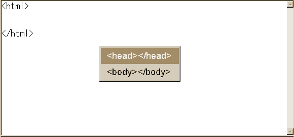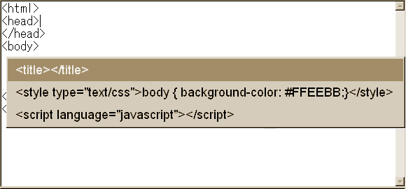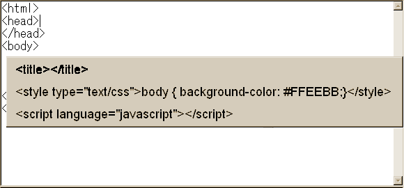 挿入したい位置で、Controlを押しながら < のキーを押してポップアップメニューを出した後、