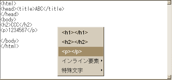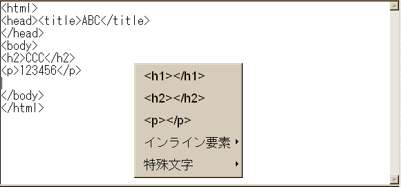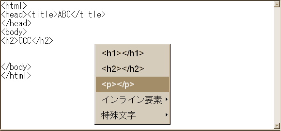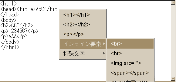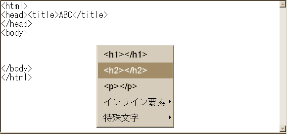 このポップアップメニューは、bodyの中で操作しないと出ません。