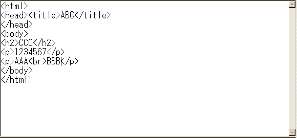 <html> <head><title>ABC</title> </head> <body> <h2>CCC</h2> <p>123456</p> <p>AAA<br>BBB</p> </body> </html> |