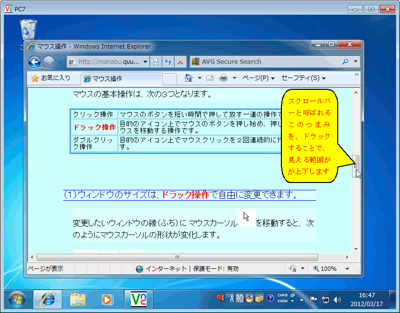 前述した通りにWindowと言うオペレーティングシステムは、 内部の見えない所は複雑ですが、 操作は簡単にできるようになっています。 以下で簡単なマウス操作を紹介します。