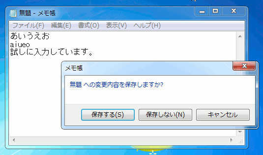 【2】の保存直後で閉じるボタンをクリックすると、すぐにメモ帳のプログラムが終了します。