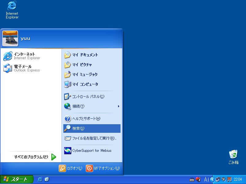 以下のように、スタートメニューにある検索を使います。