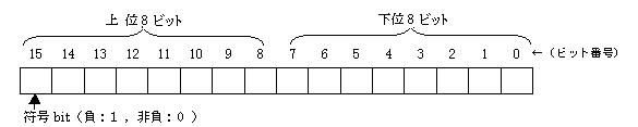 数値は,16 ビットの2進数で記憶します。負数は,2 の補数で記憶します。