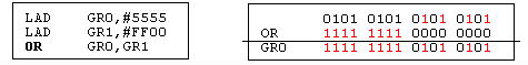 オペランドの各ビットでOR(オペランドでどちらかが1になっているbitを1にします。他のビットは0です)演算をを行います。