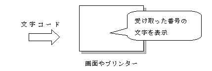 つまり、標準出力のコンソールは文字コードの番号を受け取ると、 その番号に対応する文字を出すように作られているのです。
