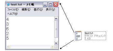 このプログラムで3つの入力しかしていないので、 ファイルの先頭から3つのデータまでしか読み取らない次の結果になります。