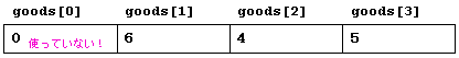 まず、各商品の販売個数記憶集計用に、goodsの配列を用意します。必要最小限の要素数を次の