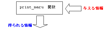 上記のprint_ maruは、d1の値の情報で表示して、表示に使ったデータをd2へ算出しています。 この場合、print_maru では、d1 が与える情報で、 ここで算出されるd2の値が得られる情報です。 そのイメージを下記に示します。