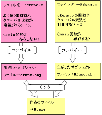 別のソースファイルBfunc.c)と結合し、