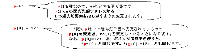つまり、次のようにp++;による変更も可能です。