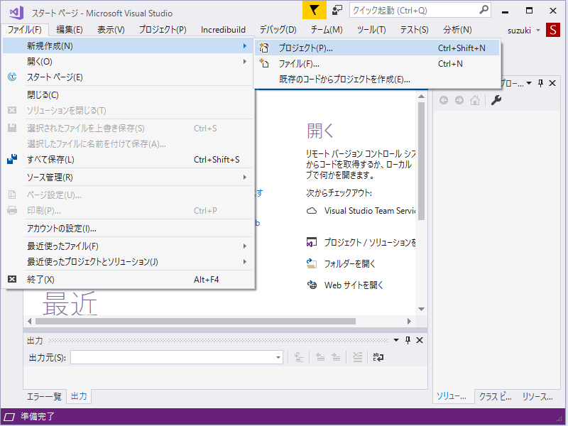それは、「ファイル」メニューから「開く」の「プロジェクト/ソリューション」を選択します。