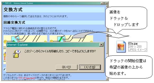 ブラウザ内の画像をデスクトップへドラック アンド ドロップすると、
