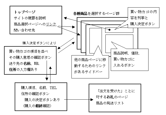 このサイト例のページ遷移図を以下に示します。動作を確認してください。