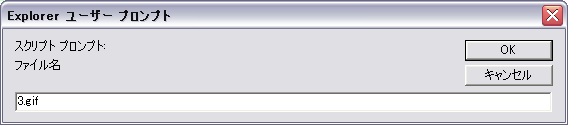 s = prompt("ファイル名", "3.gif"); の実行で、次のウインドウが現れます。