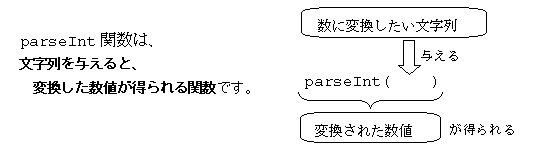 その場合は parseIntと呼ばれる関数を、次のように使います。
