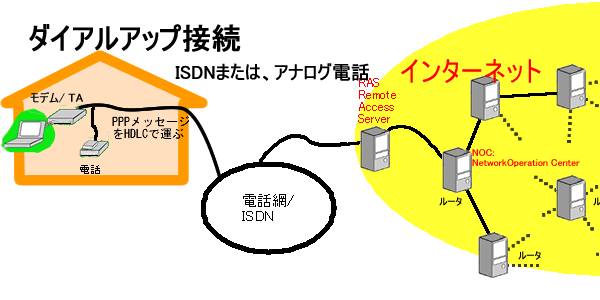 | ISDNダイヤルアップ | Integrated Services Digital Network(総合デジタル通信網)で接続します |