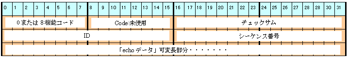 pingコマンドで使われるエコー要求と応答の構造を示します。