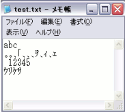 上記の,"EUC_JP"を、"MS932"変更すると、メモ帳表示と同じような『文字化け』が確認できるでしょう。("MS932"は、Windowsで使われるキャラクタセットです。)