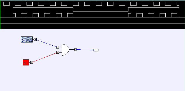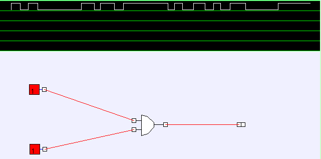 上のlogic applet部を操作して、下図で示す回路を作って信号が伝達される動作を確認してみましょう。