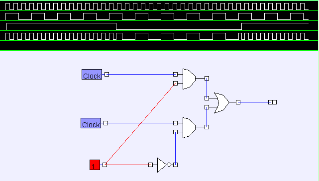 信号源のを0にすると 下のクロックを出力し、 信号源のを1にすると 上のクロックを出力する切り替え回路です。
