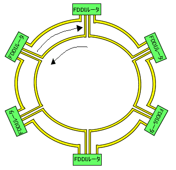 この考え方を光ファイバーに発展させたFDDI(Fiber-Distributed Data Interface)が生まれています。