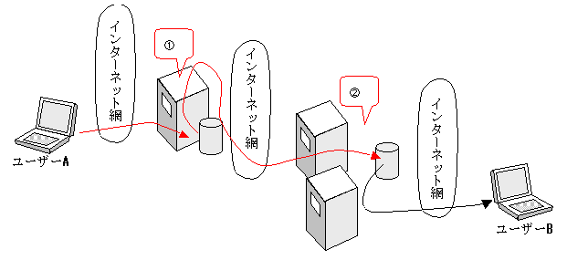 ユーザーAからユーザーBへ電子メールを送る場合です。