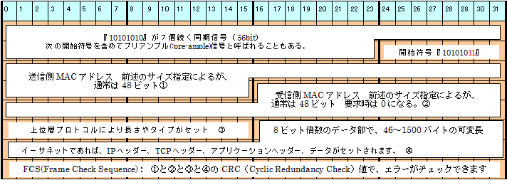なお、送信に使われるイーサーネットのフレーム(IEEE802.3)イメージは次の通りです。