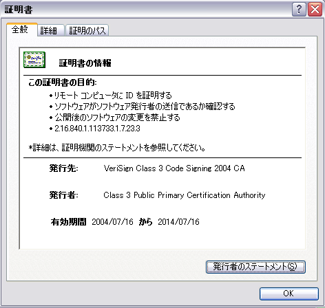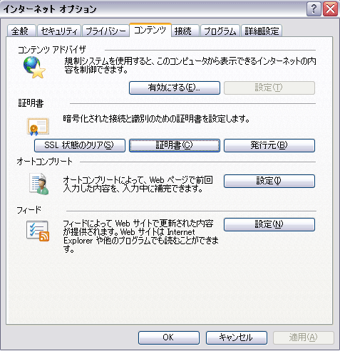 「コンテンツ」タブの証明書をクリックすることで確認できます。