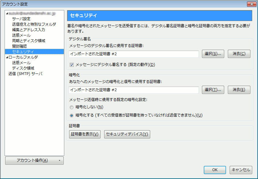 S/MIMEは、「暗号メールを実現する機能」と「署名を実現する機能」の両方を 実現する機能があります。それにより、以下のセキュリティが確保されます。
