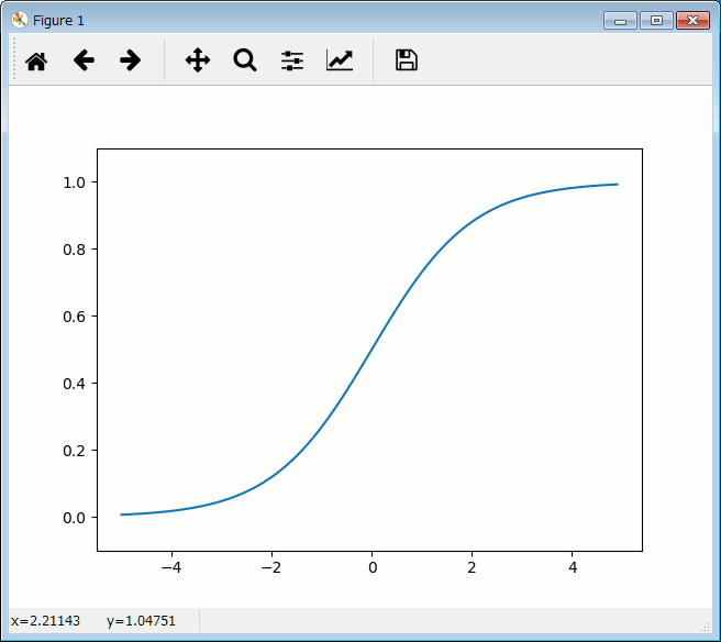シグモイド関数は、次のような入出力です。