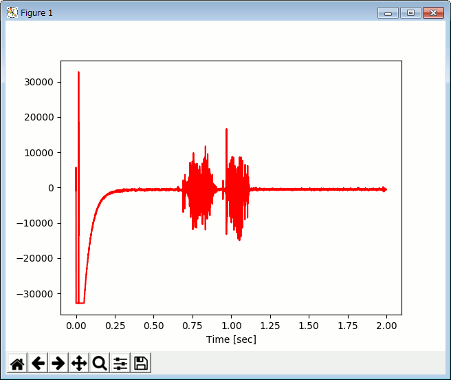 y1 = np.delete(y1, range( len(y1)-32000,len(y1) ) ) # 後ろ 32000個のデータを削除