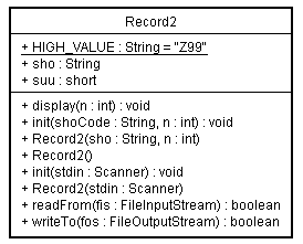 このような1レコード分を書き込むメソッドを、writeToの名前でRecord2クラスに用意します。
