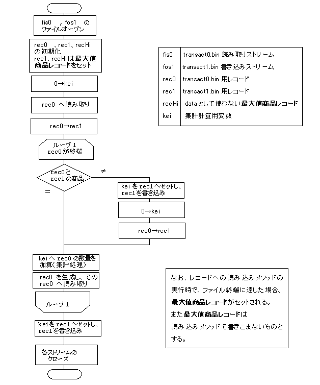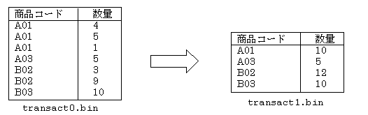 『transact0.bin』は、商品コードが昇順の並んでいることを前提とします。