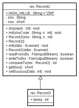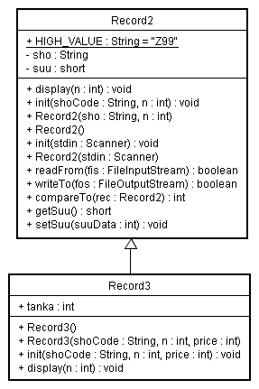 右は、『 Recoed2クラスを継承したRecord3のクラスがある』というのクラス図です。