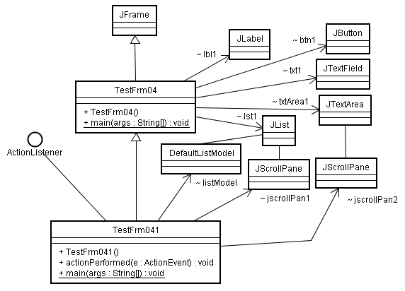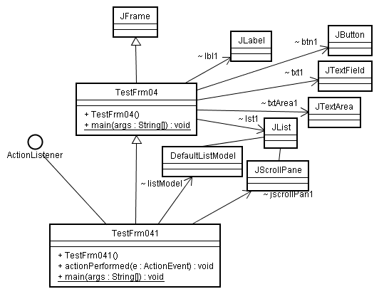 これら変更を行ったクラス図と、追加したTestFrm041.javaのコードを示します。