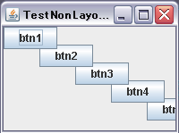 btn[i].setBounds(i * 40, i * 20, 60, 25);//位置と幅を指定