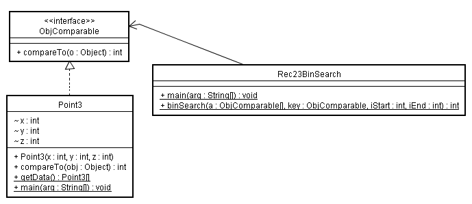 で作成したbinSearchメソッドとそれに対するObjComparableインターフェースの利用です。