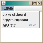 JMenu menuEdit = new JMenu("編集(E)");