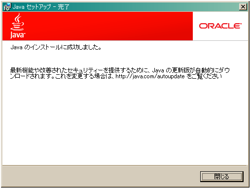 しばらくして、インストールが終了すると、次のようなダイアログが現れれます。