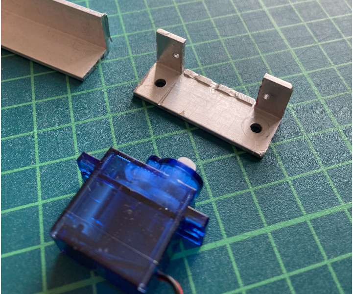 モータ付き台車を作る。ギアモータFM90(秋月より購入)取り付け用アングルを、L型アルミニューム素材を削って作った。