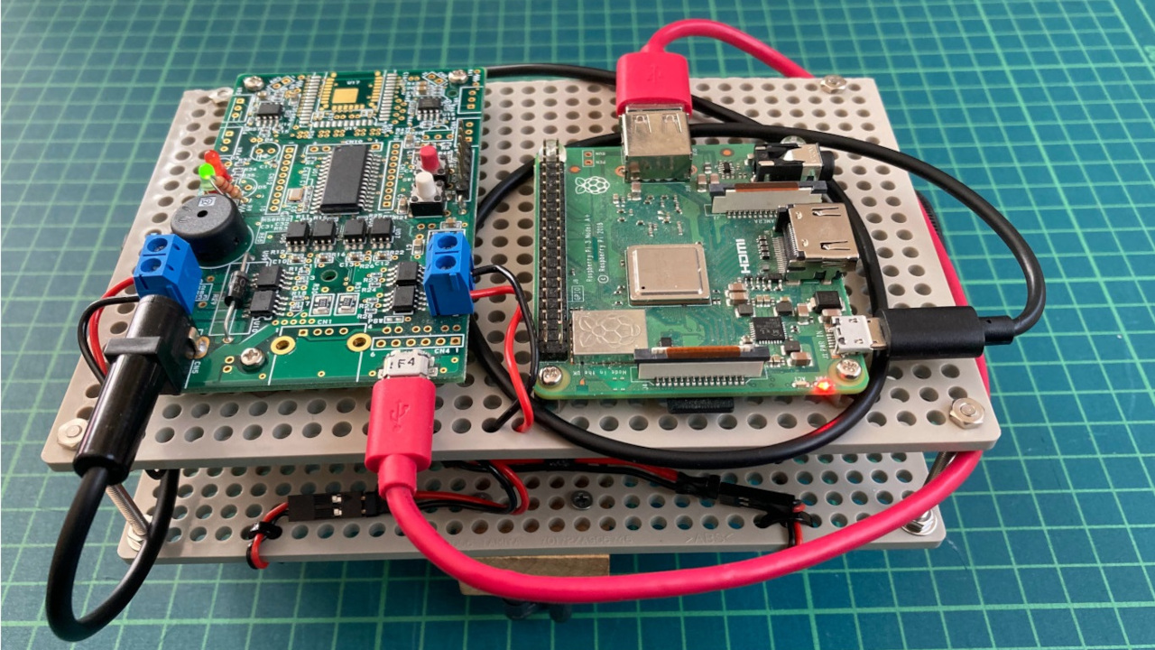 [Raspberry Pi 3 Model A+]のUSB-TypeAから、 [UMEHOSHI ITA]基板のmicroUSBに、変換ケーブルで接続します。