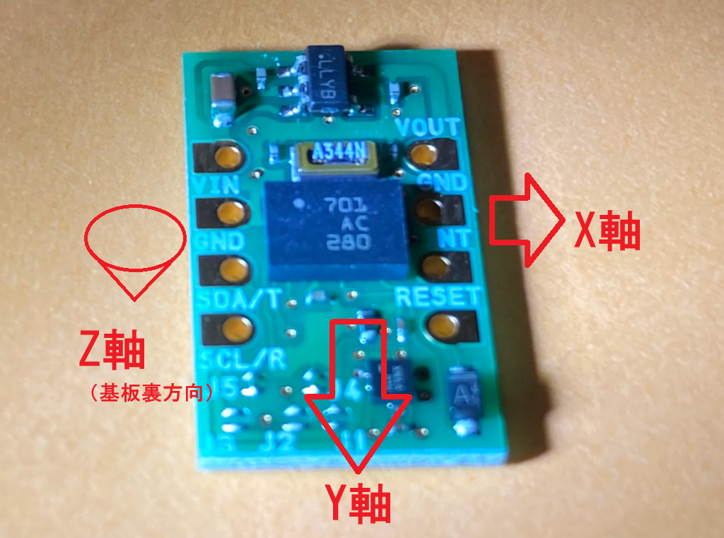 上記では、BNO055使用の下記の9軸センサーフュージョンモジュールキット(秋月電子さんから購入)を、さかさまに取り付けています。